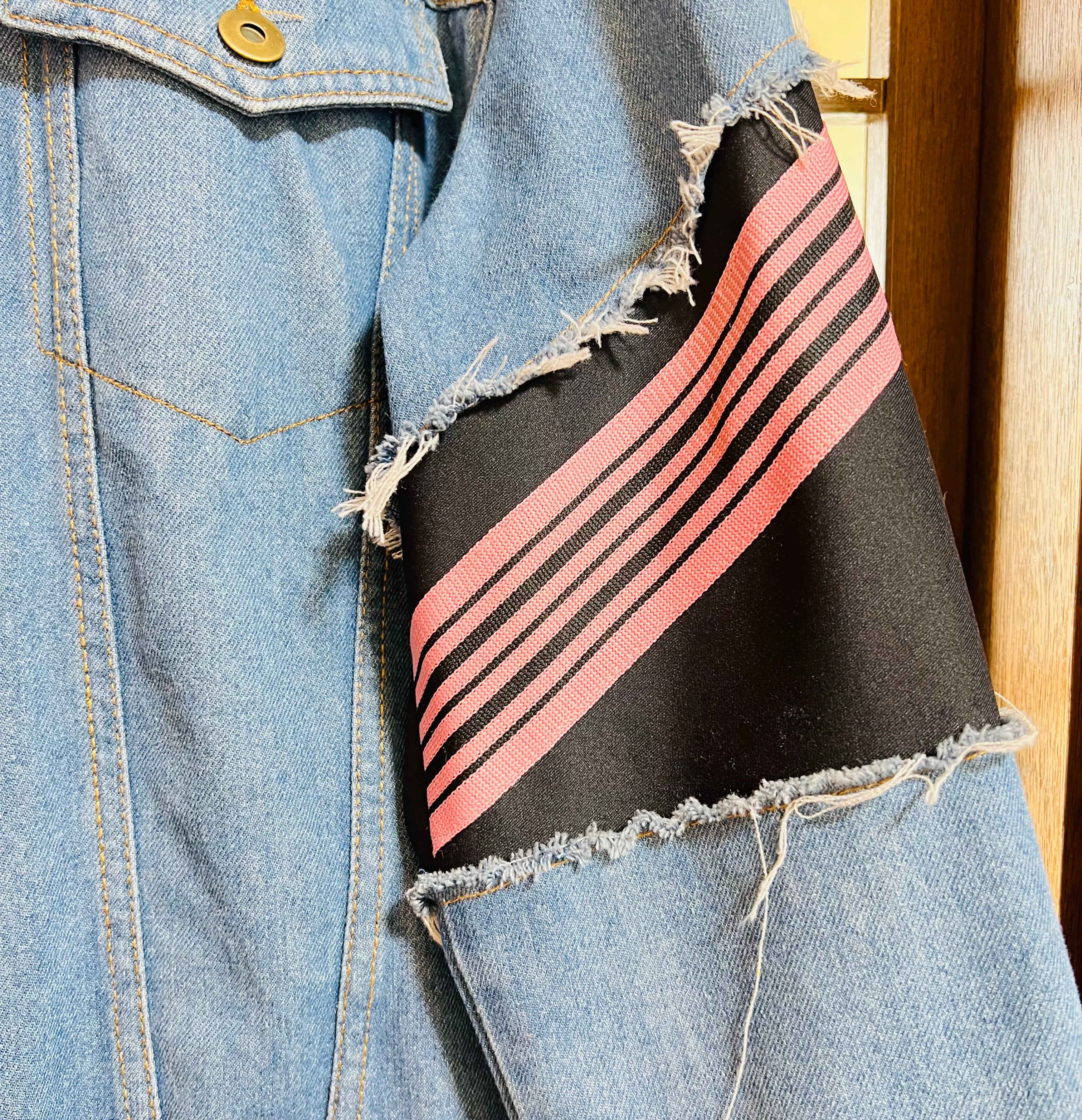 実用性と遊び心を兼ね備えたリメイクジャケットです。
