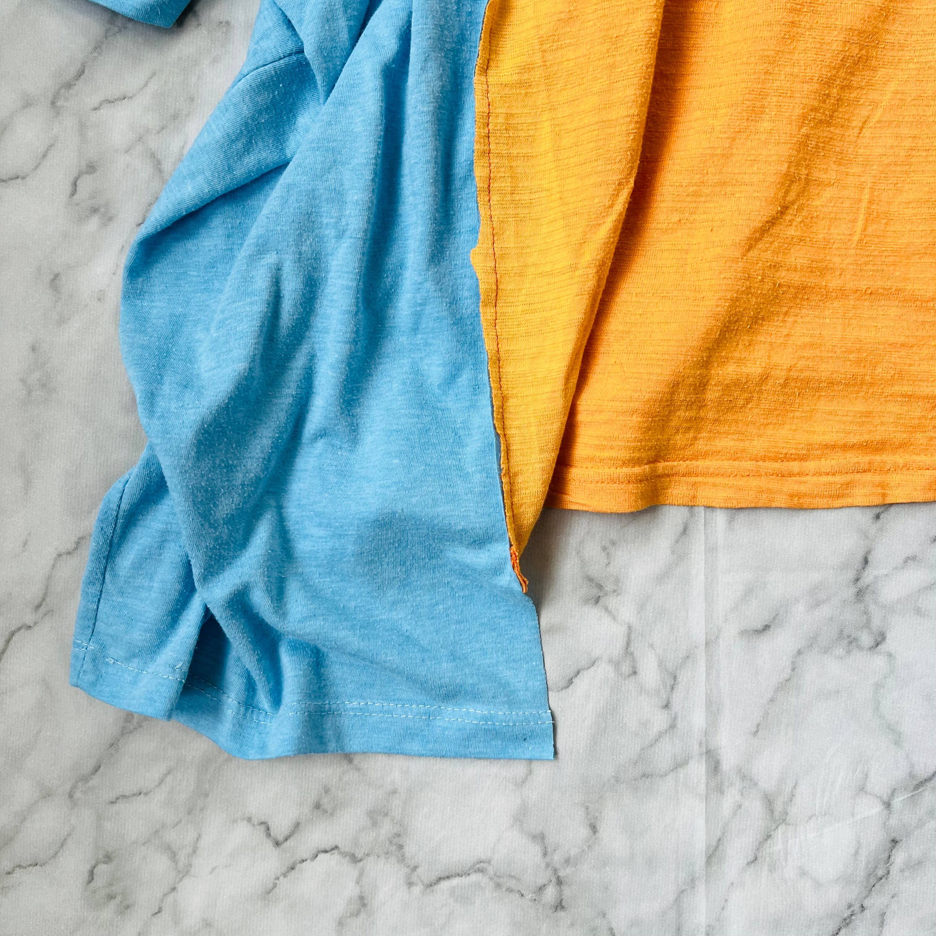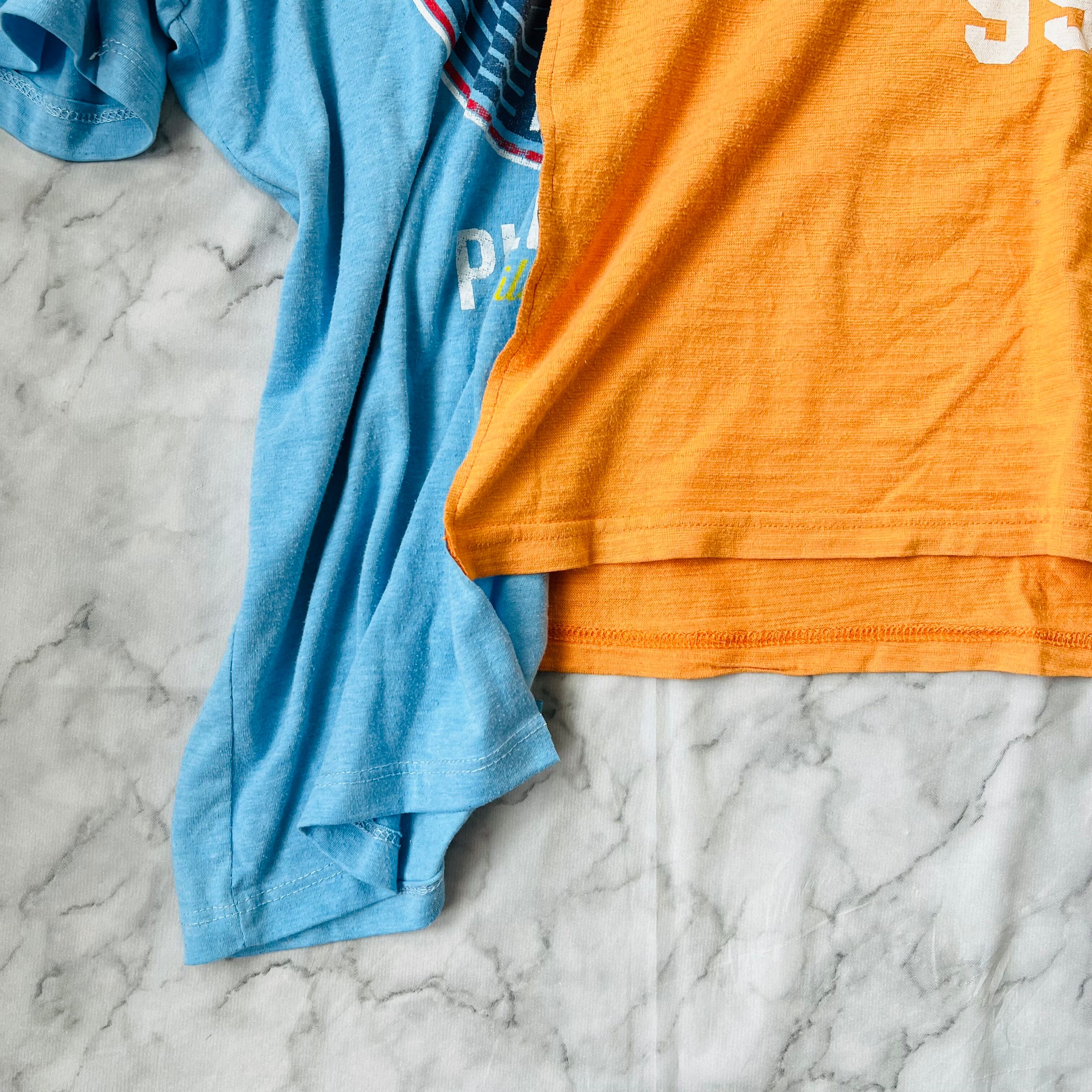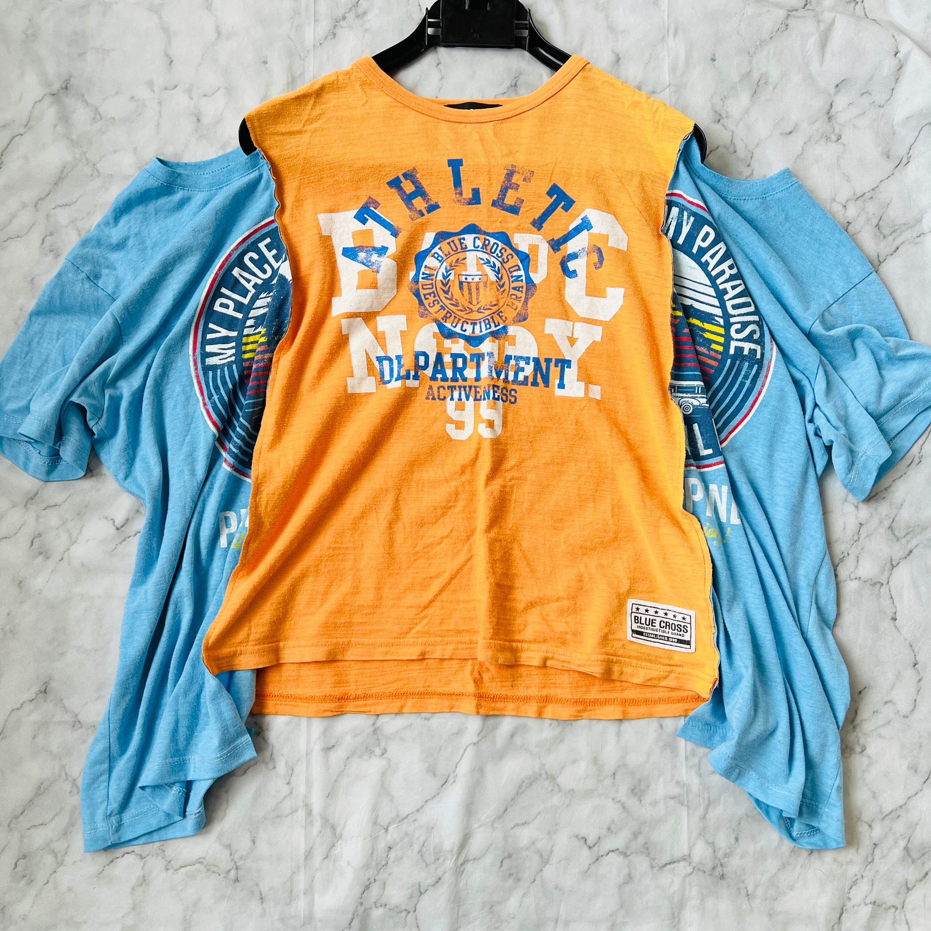 オレンジのカレッジロゴTとブルーのロゴプリントTをドッキングしました。