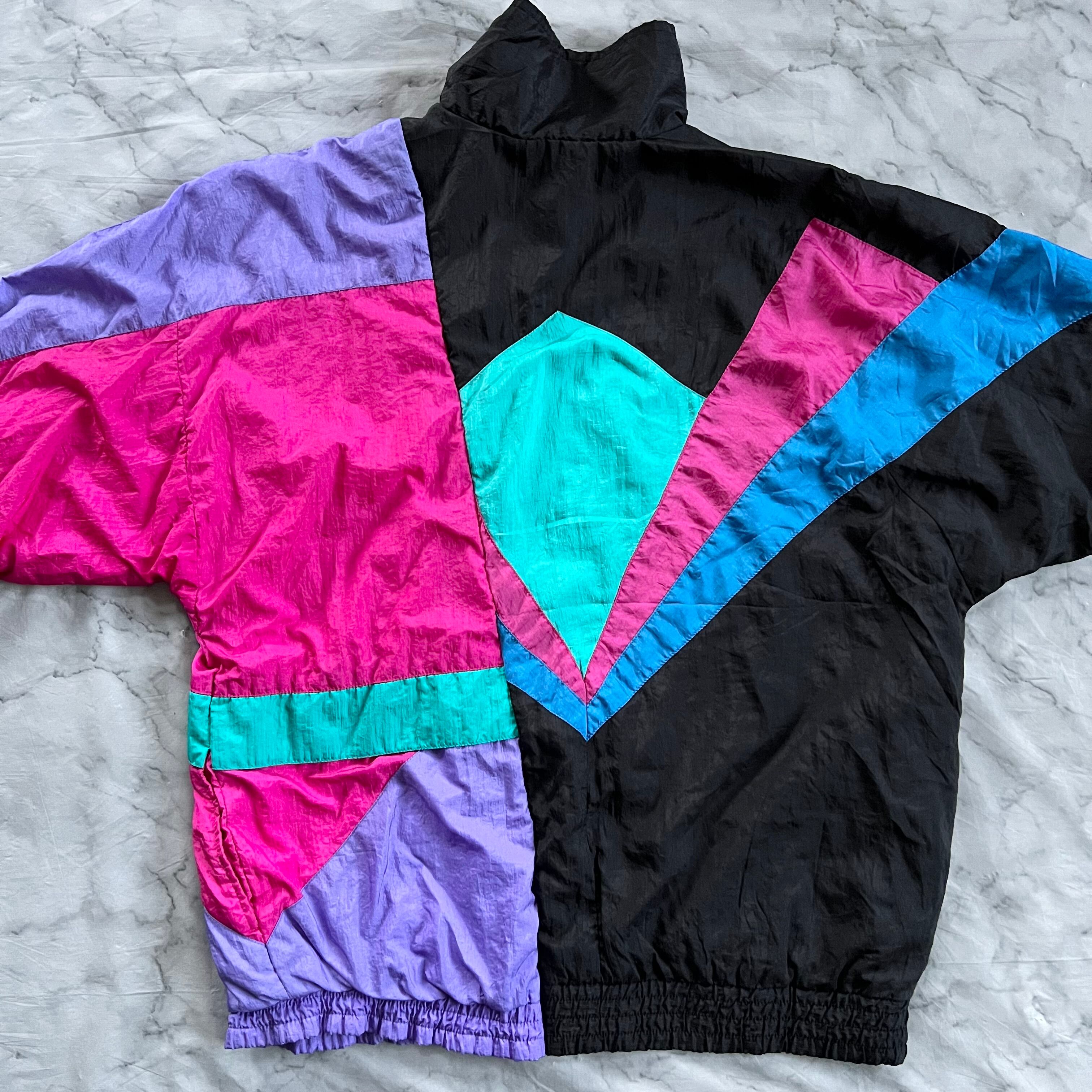 レトロ柄ナイロンジャケット(Black)