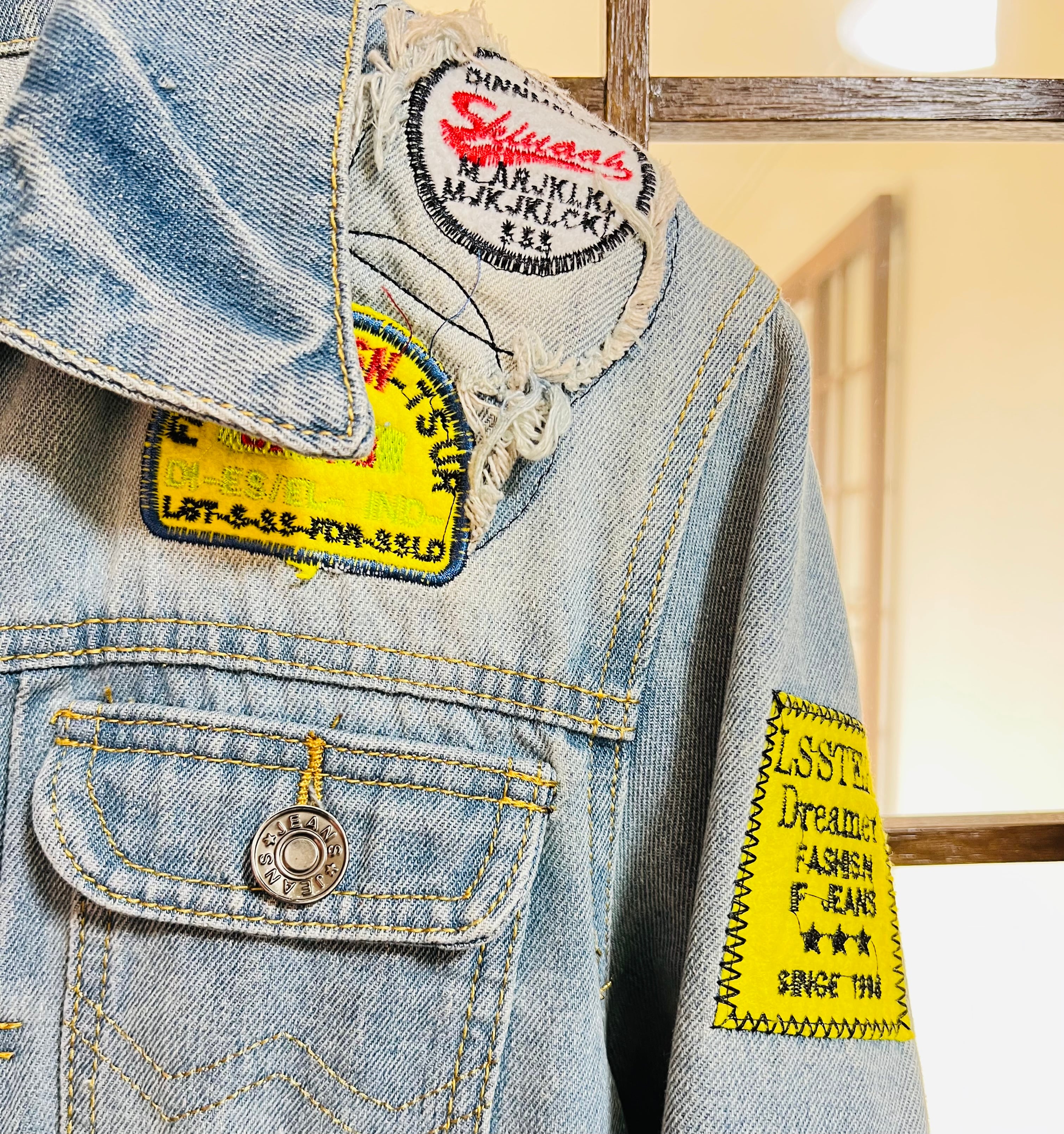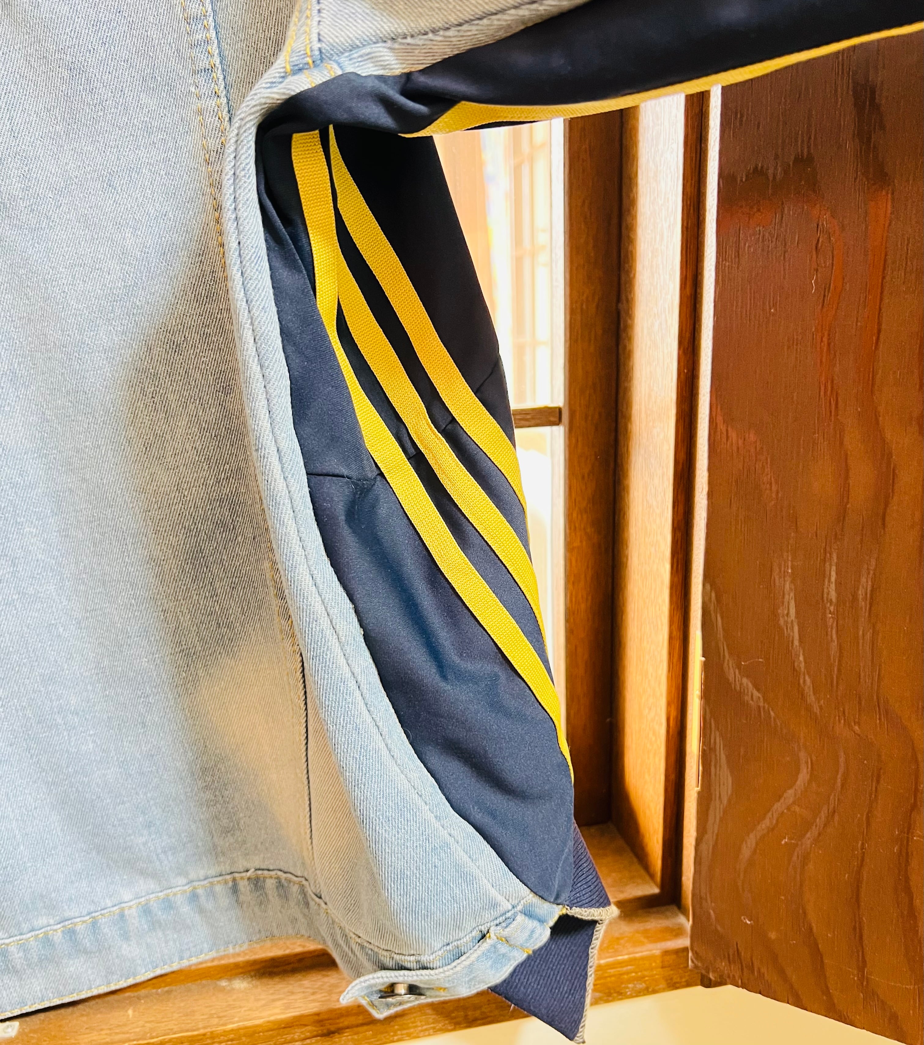 ダメージ加工が施されたデニムジャケットとサイドラインが際立つトラックジャケットを解体&再構築。